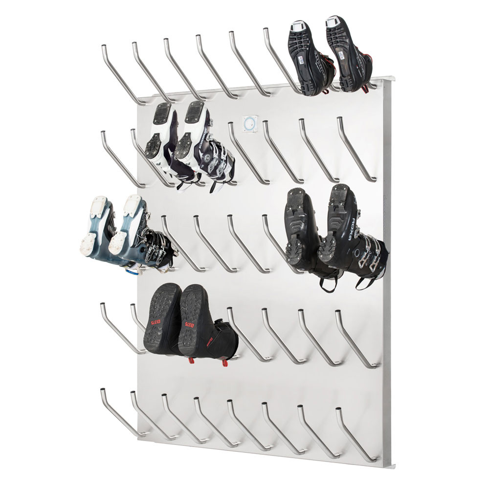 - Leichtes Aufhängen von Ski-, Halb-, Kinder- und Sportschuhen sowie von Stiefeln mit halbhohem Schaft (z. B. Wanderstiefel, Kampfstiefel