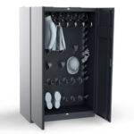 Optional kann dieser Schuhtrockner mit einer Wochenzeitschaltuhr anstatt der standardmässigen 24-Stunden-Uhr ausgestattet werden. Mit dieser Schaltuhr kann der Trocknungszeitpunkt und die Trocknungsdauer auf 7 Tage programmiert werden. Die Zeitschaltuhr kann jeweils in 2 Stundenschritten eingestellt werden. Da der Schuhtrockner für eine ganze Woche programmiert wird, kann ausgeschlossen werden, dass er über das Wochenende unnötig Strom verbraucht. Zudem kann auf eine Aufhebung der Programmierung vor dem Wochenende und die Neuprogrammierung am Wochenstart verzichtet werden. Des Weiteren kann der Schuhtrockner mit einem Ein-/Ausschalter ausgestattet werden (siehe Zubehör weiter unten), mit dessen Hilfe der Stiefeltrockner ganz ausgeschaltet werden kann. Dieser kann aber nur während der Produktion des Schrankes installiert werden, da eine Nachrüstung nicht möglich ist.